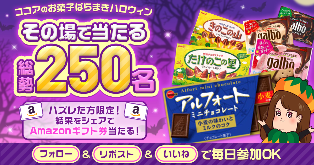 10/18(土)16:00~11/1(土)15:59は【ココアのお菓子ばらまきハロウィンキャンペーン】を開催!