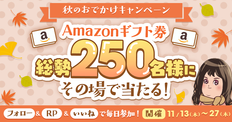 11/13(木)16:00~11/27(木)15:59は【秋のおでかけキャンペーン】を開催!